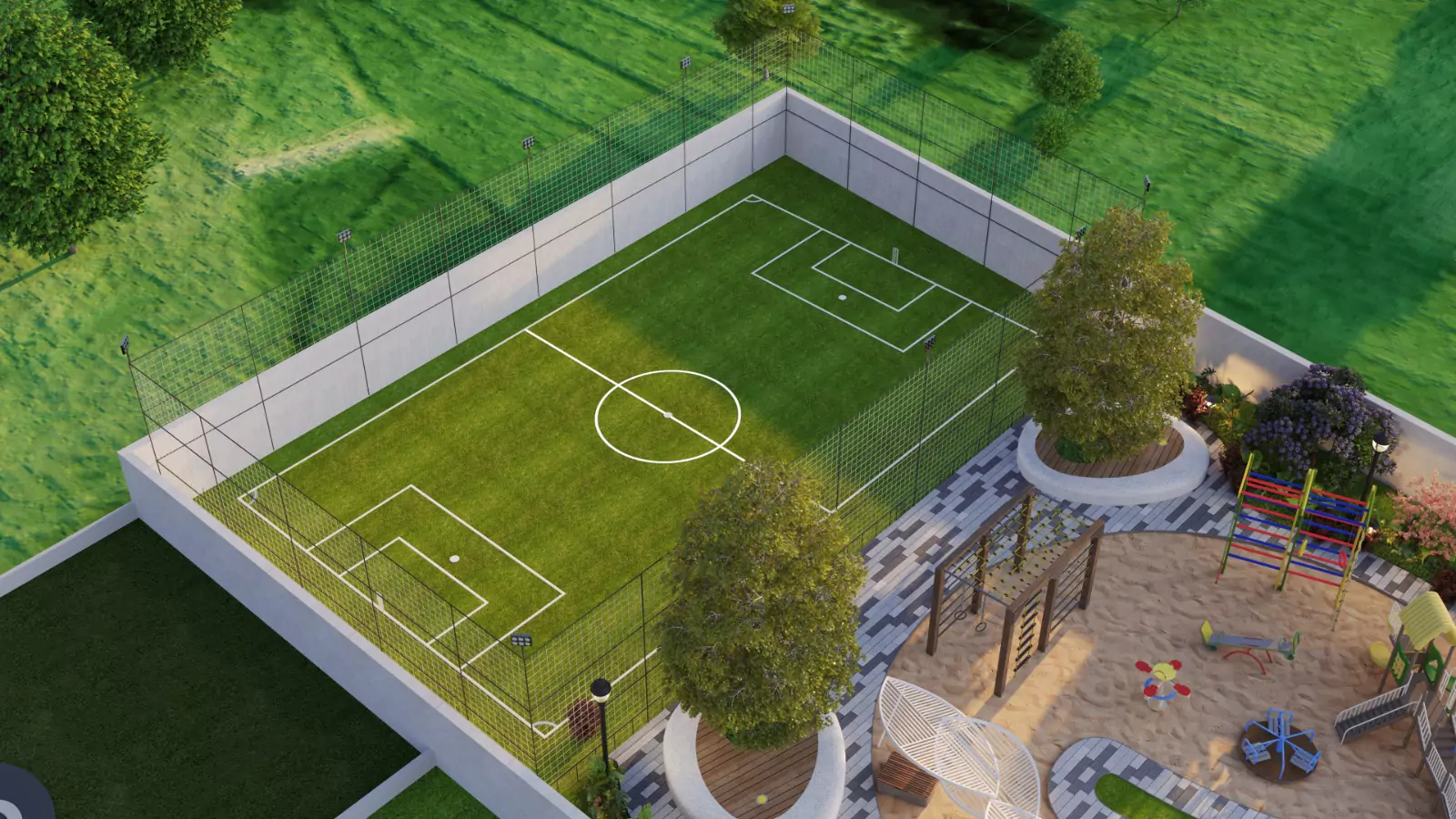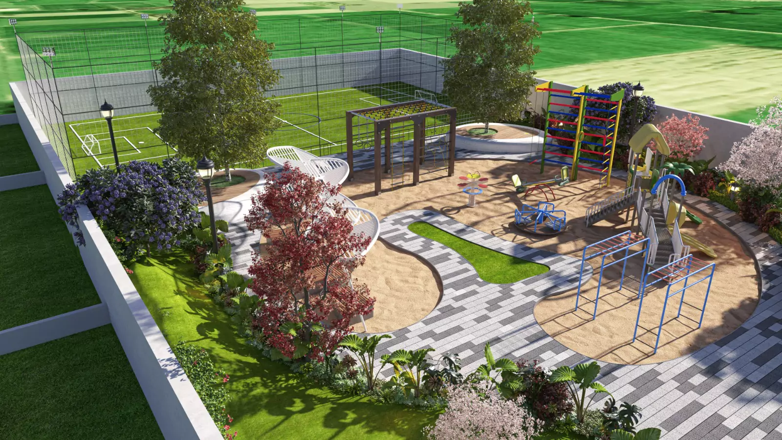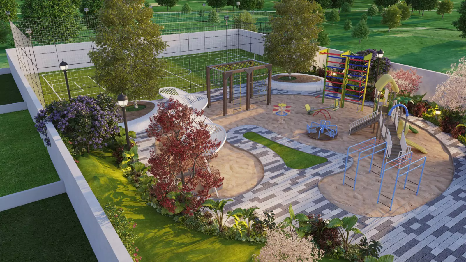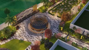 The community offers a complete range of lifestyle conveniences including a supermarket, pharmacy and clinic, emergency care, central kitchen, café-style dining, theatre, gym, yoga space, and multipurpose function hall. Residents can enjoy indoor and outdoor kids’ play areas, indoor adults’ play area, guest rooms, exquisitely designed parks, water fountains, and relaxing rooftop lounge bar. Wellness and recreation are enhanced with men’s pool, ladies’ pool, infinity pool, pickleball court, cricket net, and a dedicated walking track—creating a balanced environment for comfort, leisure, and everyday living.